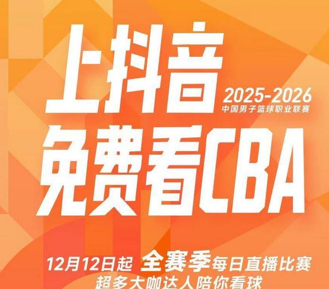 所以从12月12日晚间的CBA揭幕战起,抖音集团相关平台如抖音、今日头条等平台;